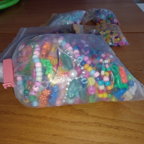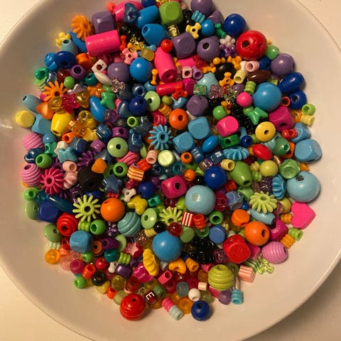 Perler, Plast perler, Glimmer og mønstret tryk perler i plast og forskellige former 31 stk.