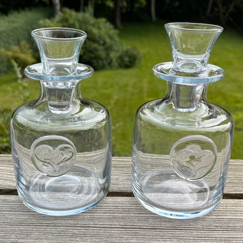 Morgenlærke / Snapse-Doktor, Holmegaard, Snapseflaske med løst drikkeglas som prop.