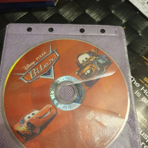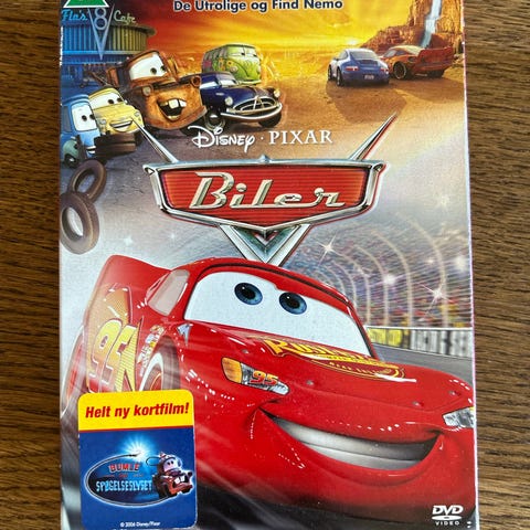 Disney Pixar Cars + DVD Disney Biler , Børne - familiespil, brætspil, Sæt bestående af Disney Pixar Cars Racing Game og DVD’en Biler 2. Begge dele er i god stand og perfekte til børn, der elsker fart og spænding!