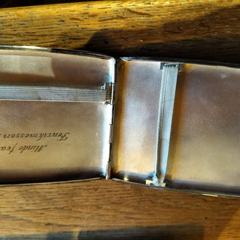 Andet smykke, sølv, Russisk, Interessant og smukt atypisk sølvitui. Har været brugt til småtingsafdelingen. Nemt og overskueligt at have med i evt. taske ell. lomme.( oprindeligt cigaretitui. Fra 1930-40 erne.