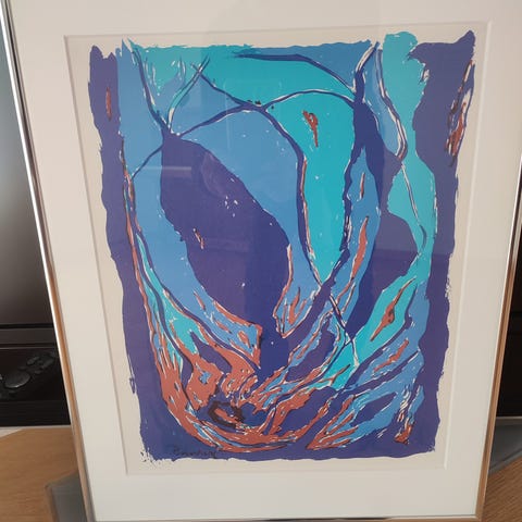 Indrammet bag glas. Ramme af træ.