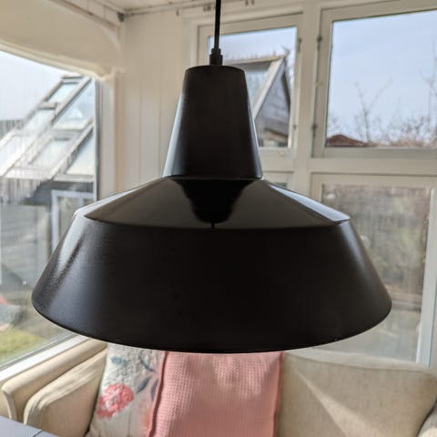 Pendel, 47 cm alu pendel. Pæn og velholdt. (Mangler pinol-ledningsaflastning).