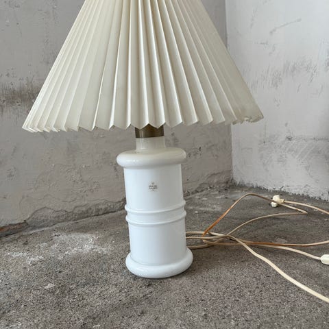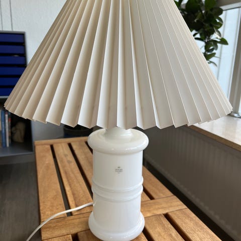 Lampe, Holmegaard, Apotekerlampe. Apotekerlampen er fra Holmegaard. Den er i størrelse: lille. Bordlampen er i hvidt opalglas.