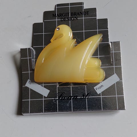 Broche, plast, Margit Brandt, 350 kr pr stk for svaner