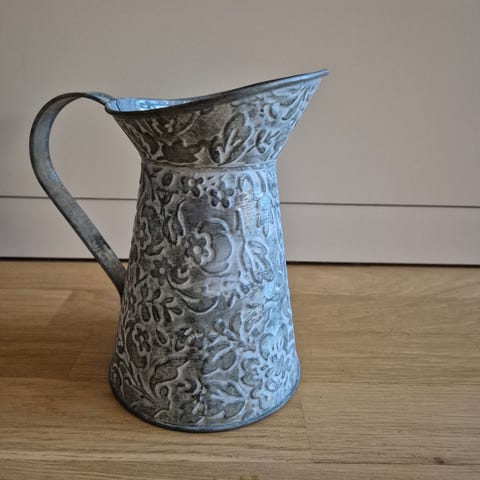 Metalkrukke, dekorationsskål, dekorationspotte, juledekoration, plantedekoration.