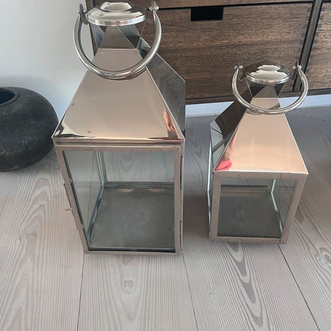 Franske lanterner, Tre meget smukke franske lanterne. Perfekte til at skabe hygge stemning i den mørke tid. Stor 30x16cm mellem 23x13cm og den lille 15x11cm. Prisen er for alle tre. Sender gerne på købers regning