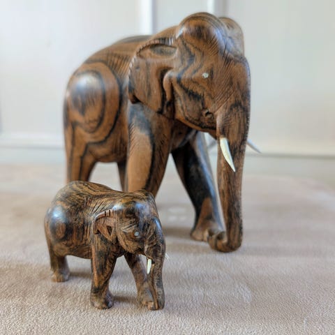 Smuk gammel håndskåret træ elefant , Afrikansk elefant i træ - FRA 99,-