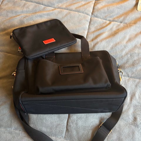 i kernelæder med tilhørende skulderstrop. Ny pris kr. 4.500,- Købt i Paris hos Lancel. Kvittering haves.