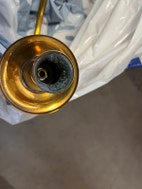 Lysekrone, Fin gammel 6 armet messing lysekrone til levendelys/LED. Der medfølger 2 ekstra kæder til ophæng.