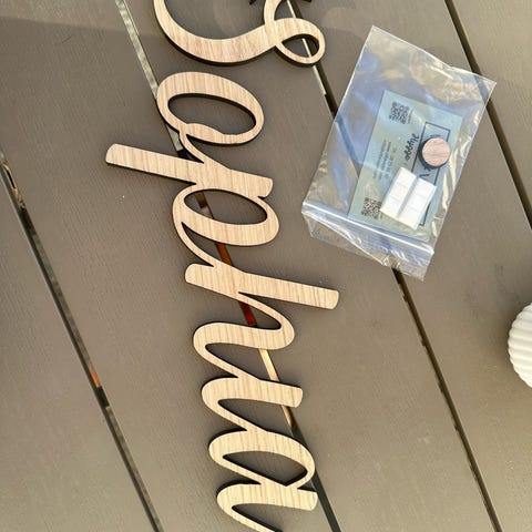 Navneskilt, Juliana, Navneskilt, Juliana navneskilt I hvid, 22,5 × 10,5cm, med matchende skruer og bogstavark sælges. Nu nedsat med 20,-.