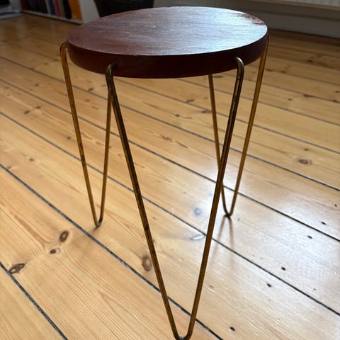 Blomsterbord i Egetræ meget særpræget med fugle op af stammen. Nostalgi
