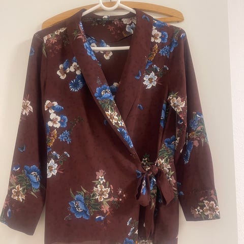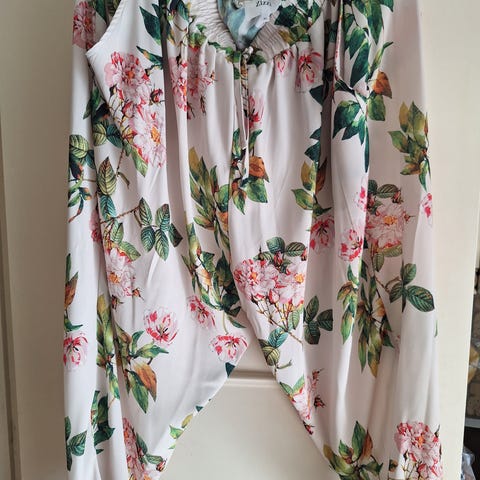 Tunika, Jackie, str. 52, Marineblå m mønster, Viskose/Polyester, Næsten som ny, Meget fin tunika / skjorte i marineblå med fine blomster & et par enkelt fugle fra Jackie VRS