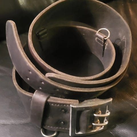 Nyt bælte med meget flot bæltetegn i kunst PU læder ca 110 cm - bredde bælte ca 4 cm
