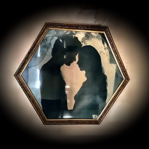 Erotisk billede, Erotisk indrammet billede af en mand med texter som kan læses