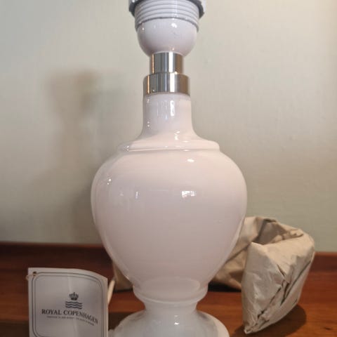 Lampe, Holmegaard, Af typen Roma. Stor. Højde til fatning 29 cm. Design af Anne Grethe von Halling-Koch for Holmegaard 1989. I hel og fin stand i hvidt opalglas. Kan sendes for 45 kr.