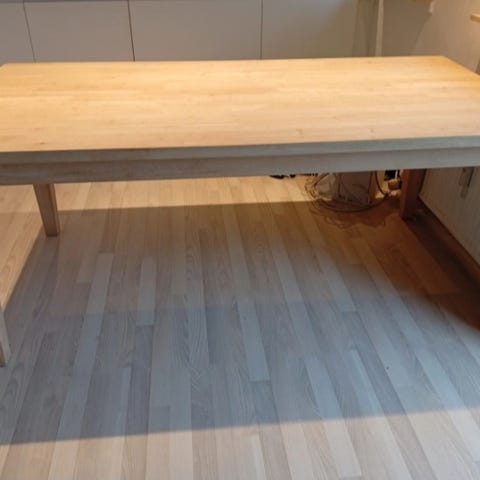 Spisebord, Massivt bøgetræ, b: 100 l: 190, Massivt bøgetræs-bord. Meget velholdt.