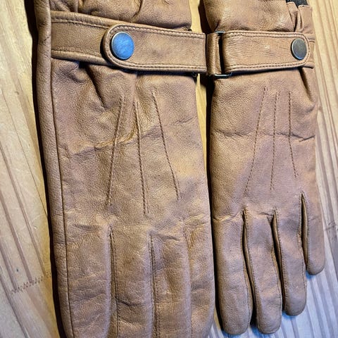 Handsker, Brun/Sort, Skind, Ubrugt, Ruskindsluffer, brun eller sort, nye i indpakning.