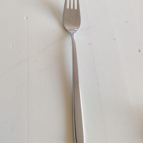 Antik indisk gaffel, Indisk, Smuk indisk messing-gaffel med den indiske gud Vishnu. Længde 17,7 cm. Fra ca. år 1900.