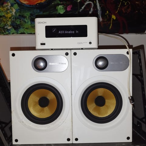 Audio streamer with Stereo speakers; Internet radio and music from PC via wired or Wi-Fi network; line-in audio and FM/DAB radio built-in.