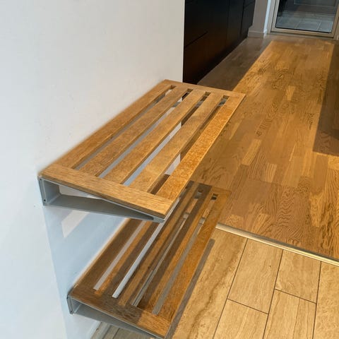 Skoholder i klassisk og minimalistisk design. Skoholderens bagplade er i pulverlakeret stål og forpladen i blød sort plast. Bøjlen af alumininium holder din sko pænt på plads mod pladen. Skoholderen kommer i farven sort med grå detaljer. Den har en bredde på 26,3 cm, en højde på 13,5 cm samt en dybde på 1,8 cm.