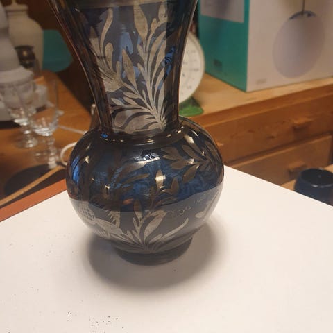 Glas, Vase, Cobolt blå vase, Flot høj 80 cm blå glas vase