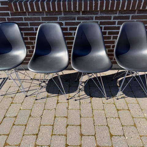 Spisebordsstol, Plast & træ, Vitra Eames, 2 stk. Vitra Eames Plastic DSW Spisebordsstol Dyb Sort/Gylden Ahorn sælges.