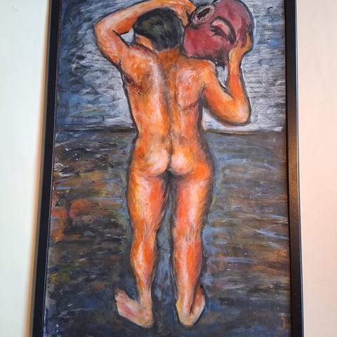 Akrylmaleri, BERNARD MENSAH , motiv: Portrætter/Figurer, stil: Naturalistisk, b: 31 h: 73, Maleri .. Bernard Mensah