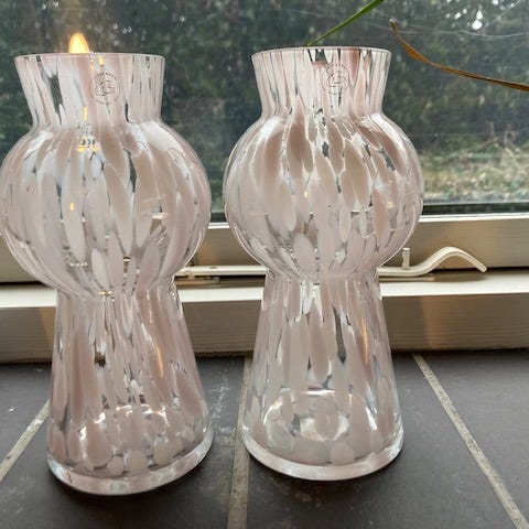 Glas, Vase, Lene Bjerre, Helt ny super flot Avillia vase med 6 kunstige røde roser. Den kan også bruges som gulvvase. Måler ca. 34,5 cm i højden og ca 18 cm i diameter. Sælges for kr. 325 for vasen og kr. 60 for roserne eller begge dele for kr. 335 ny pris for vasen uden blomster var kr. 826,00. Kommer fra et ikke ryger hjem.