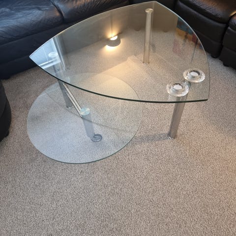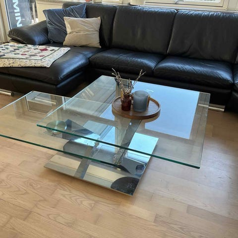 Glasbord, Ved ik, glas, b: 80 l: 150 h: 49, Stuebord, sofabord med glas plade i toppen samt granit plade i bunden mål kom på snarest