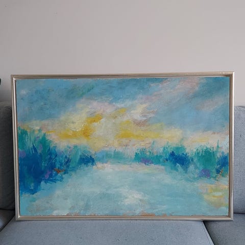 Olie på lærred, Ole Olsen, motiv: Aftenstemning Karup Skov