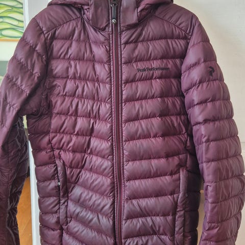 Jakke, Dunjakke, Peak Performance, str. 140, God varm overgangsdunjakke. Farven er støvet pink.