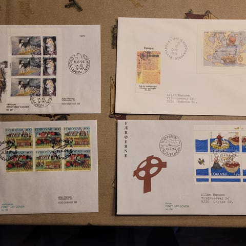 143 stk. førstedagskuverter fra 1975 til 1987. 11 stk. maximumkort fra samme periode. Enkelt & dobbelt mærke kuverter. Nogle er Indsat i albums. Estimeret pålydende kr. 519. Pris 100 kr. Bud modtages. Sendes mod betaling via mobilepay for købers ansvar.