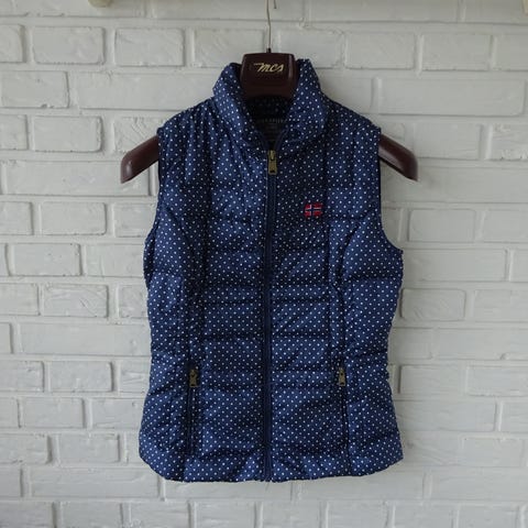 Napapijri Sort Dame Vest i størrelse M. Vesten er sort og designet til kvinder. Den har en høj krave og lynlås foran med tekstdetalje. Materialet er let og quiltet, egnet til lag-på-lag brug.