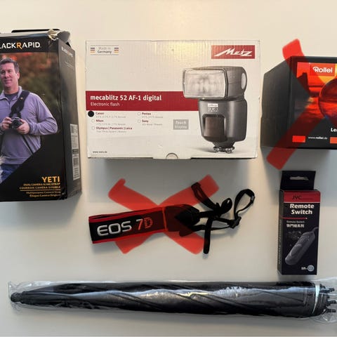 Udstyr til Canon , God, Fotoudstyret har jeg brugt til et Canon EOS 5D Mark II, men da jeg har solgt mit kamera, sælger jeg også dette udstyr.