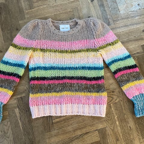 Jakken er beige - og fotos af sweateren i olivengrøn er kun sat på annoncen for at vise looket.