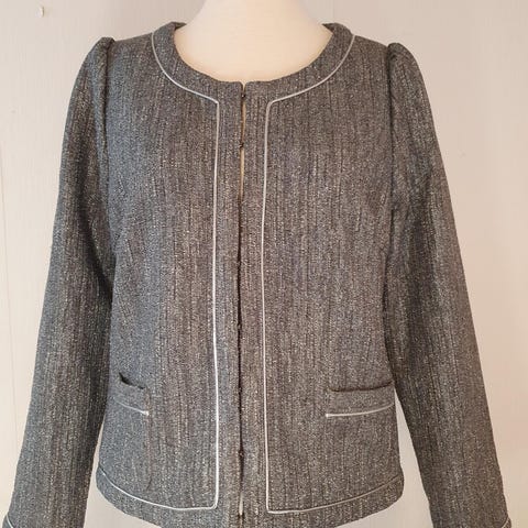 Blazer, str. 38, Sand, Brokade, Stort set som ny, Luksuriøst udseende habit jakke i blokade i blå nuancer med guldtråde. Figursyet og med lapper på albuer. Ingen tegn på at være brugt. Nypris ca. 2500,-