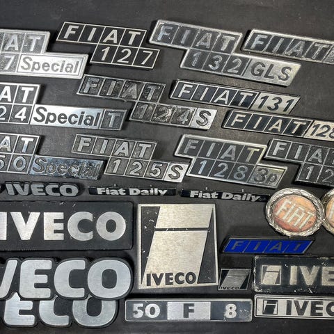 originale skilte fra fiat 128 1100, Fiat, Stammer fra 1 ejers rød fiat 128 blev pillet af i kærlighed til en trofast bil de er i rigtig fin stand trods alderen med lidt patina altid været indefor i en kasse og klar til ny ejer