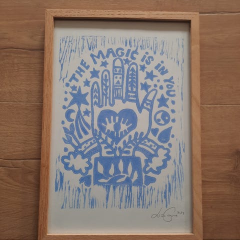 Litografi, Lisa Grue, motiv: Forskellige, b: 20 h: 27, To smukke litografier/linoleumstryk af Lisa Grue.