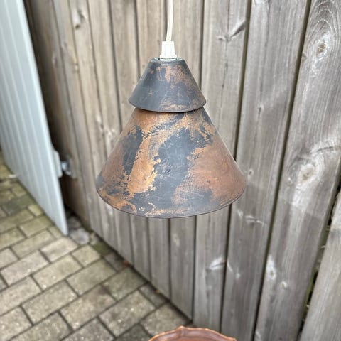 Fin lille retro metallampe fra svenske Belid. 19cm i lampeåbningen, 12,5cm høj. I fin stand.