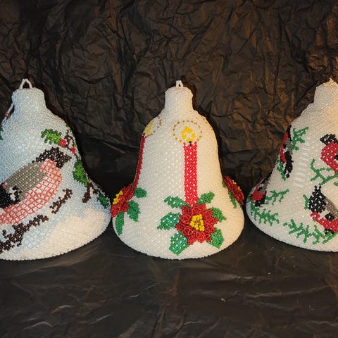 Fire fine vintage håndlavede perleklokker fra 1970’erne.