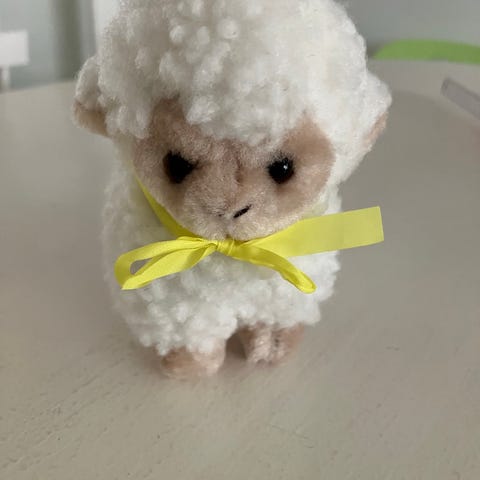 Vintage påskepynt, 2 hvide plys påskelam. 15cm lange, 11 cm høje