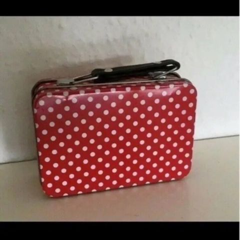 Gl fin robb kuffert med syninger og prikker, Fineste gl mini kuffert æske opbevaring
