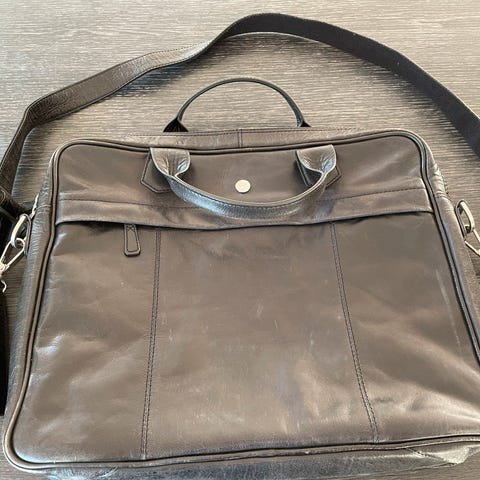 Computertaske, Saddler, Splinterny computertaske i brunt bøffellæder.