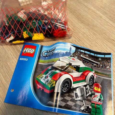 Lego City, 60053 racerbil, Smart racerbil fra lego city. Sættet er intakt men uden æske. Fra røg - og dyrefrit hjem.