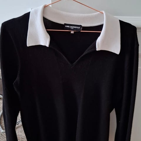Karl Lagerfeld blazer, str. 36/38, Lys blå meleret, Polyester/bomuld/polyamid, Næsten som ny, Smuk lys blåmeleret blazer fra Karl Lagerfeld brugt ganske få gange. Str. 36/38 (IT 42).