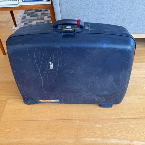 Kuffert, DELSEY, b: 62 l: 21 h: 49, hardcase kuffert, med to hjul som virker fint, 2 nøgler