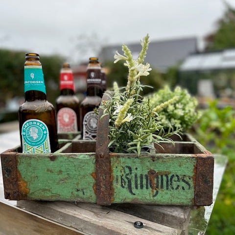 26 stk. gamle ølflasker medfølger, hvis det ønskes.