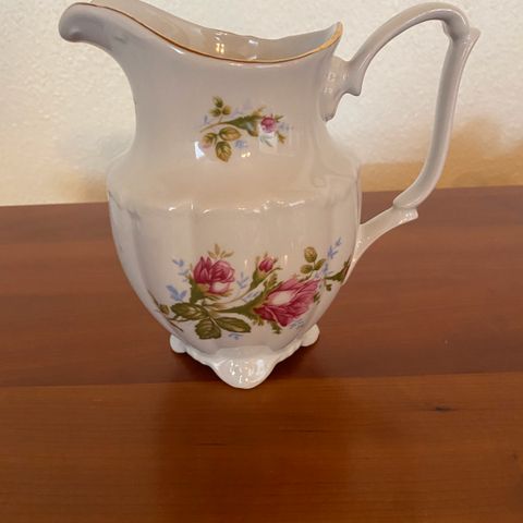 Porcelæn, Vandkande, mælkekande , Polsk mærke, Marie Terese, Mælkekande, meget smuk, Måler ca. 17 cm. Med Røde roser motiv, Stand : Meget Fin uden Fejl. Det er en polsk mærke og stellet hedder Marie Terese.