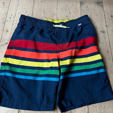 Badetøj, Badeshorts, Jack and Jones, str. 164, Jack and Jones Badeshorts sælges - mørkeblå med hvid skrift - str 164 - med netindlæg - måler 31 cm lange og 44 cm over numsen - med snørre i maven - 100% polyester - lidt falmet i farven men fin stand.