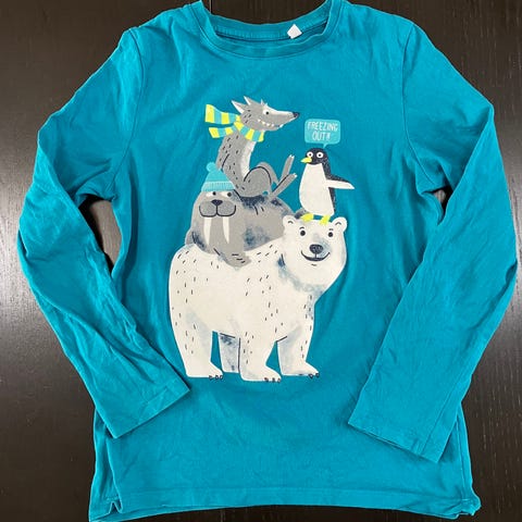 Ubang snakke bluse med katteøjne ved håndled. Str. 110 i flot stand.